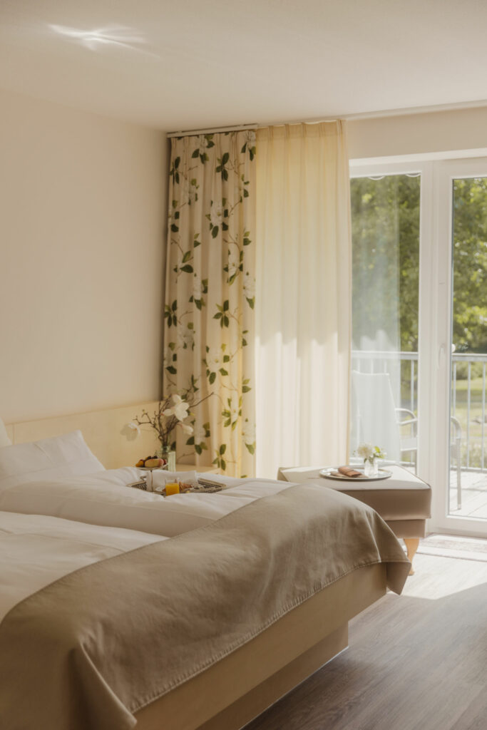 Die großzügig geschnittenen Zimmer im Landhaus verbinden ländlichen Charme mit moderner Zurückhaltung – lichtdurchflutet, stilvoll eingerichtet und mit Blick ins Grüne. Ideal für alle, die Naturverbundenheit und stilvolles Design gleichermaßen schätzen.