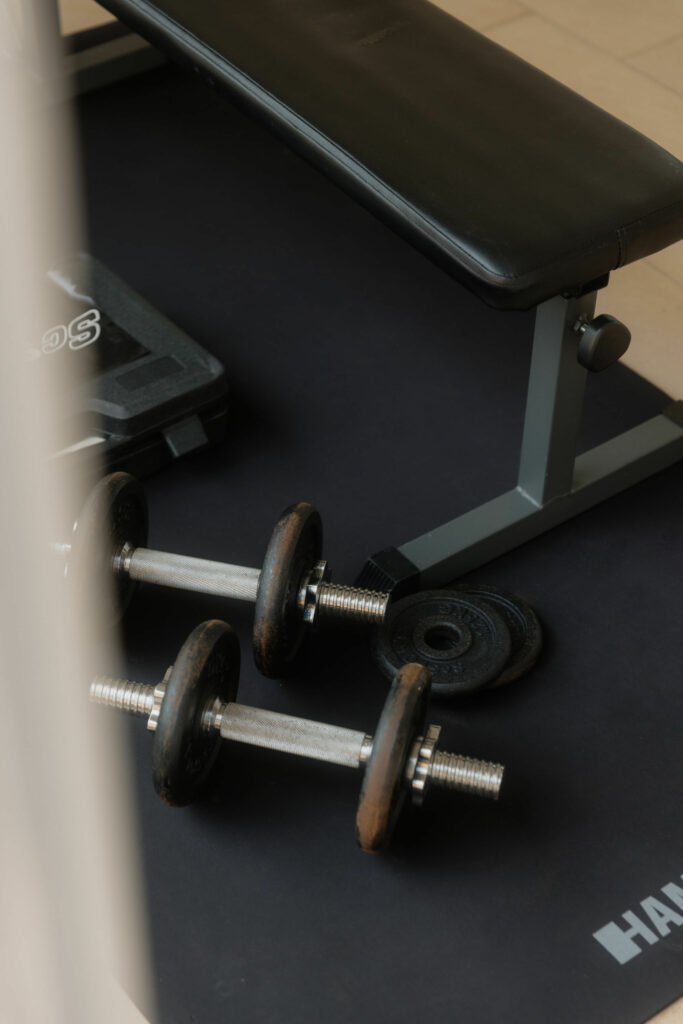 - Flachbank mit Hanteln